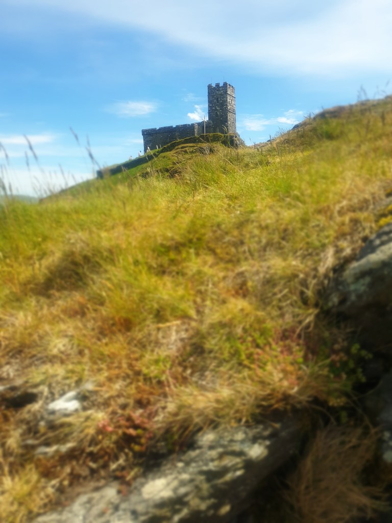 One story tells of a wealthy merchant who, in gratitude for surviving a terrible storm, vowed to build a church on a prominent landmark. When the Devil heard of this he was angry and visited the site each night throwing the building stones off the tor. The parishioners enlisted the help of the Archangel Michael, who hid behind Cox Tor (I need to visit this beacon next time) one night and threw a huge boulder which hit the Devil between the horns. He subsequently left builders in peace and that’s how we have a temple in this ley line.